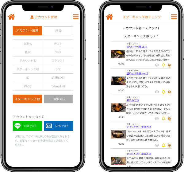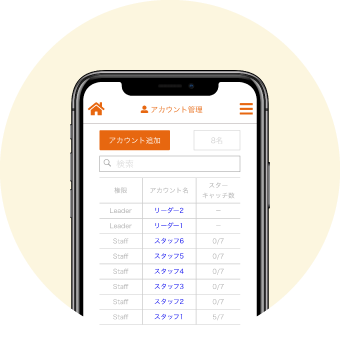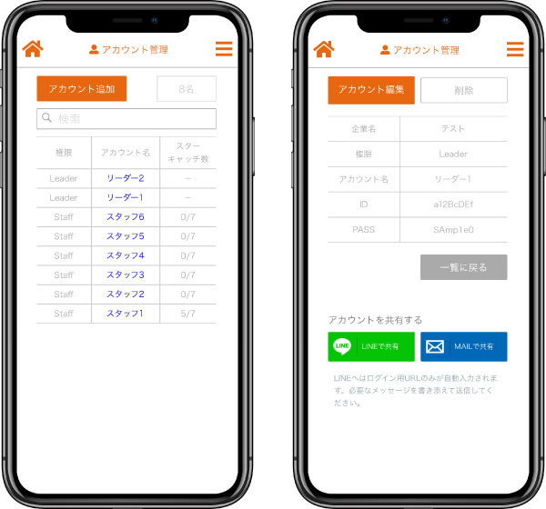 「Leader」と「Staff」の2つのアカウント権限があります。